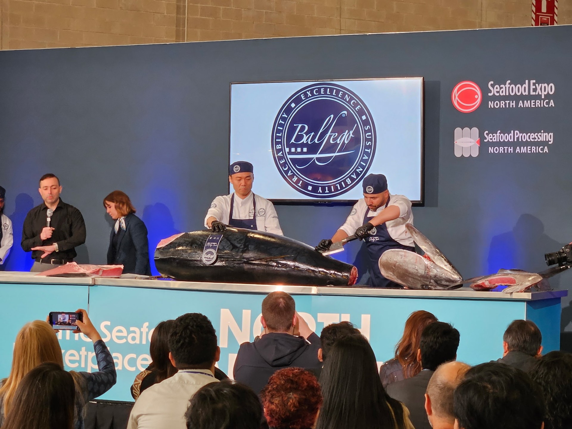 There were also moments on the show floor that highlighted the craftsmanship and global nature of the industry. One example was Balfegó’s live tuna cutting demonstration featuring a 500-pound fish, which drew a lot of attention and spoke to both the scale and tradition behind the category.